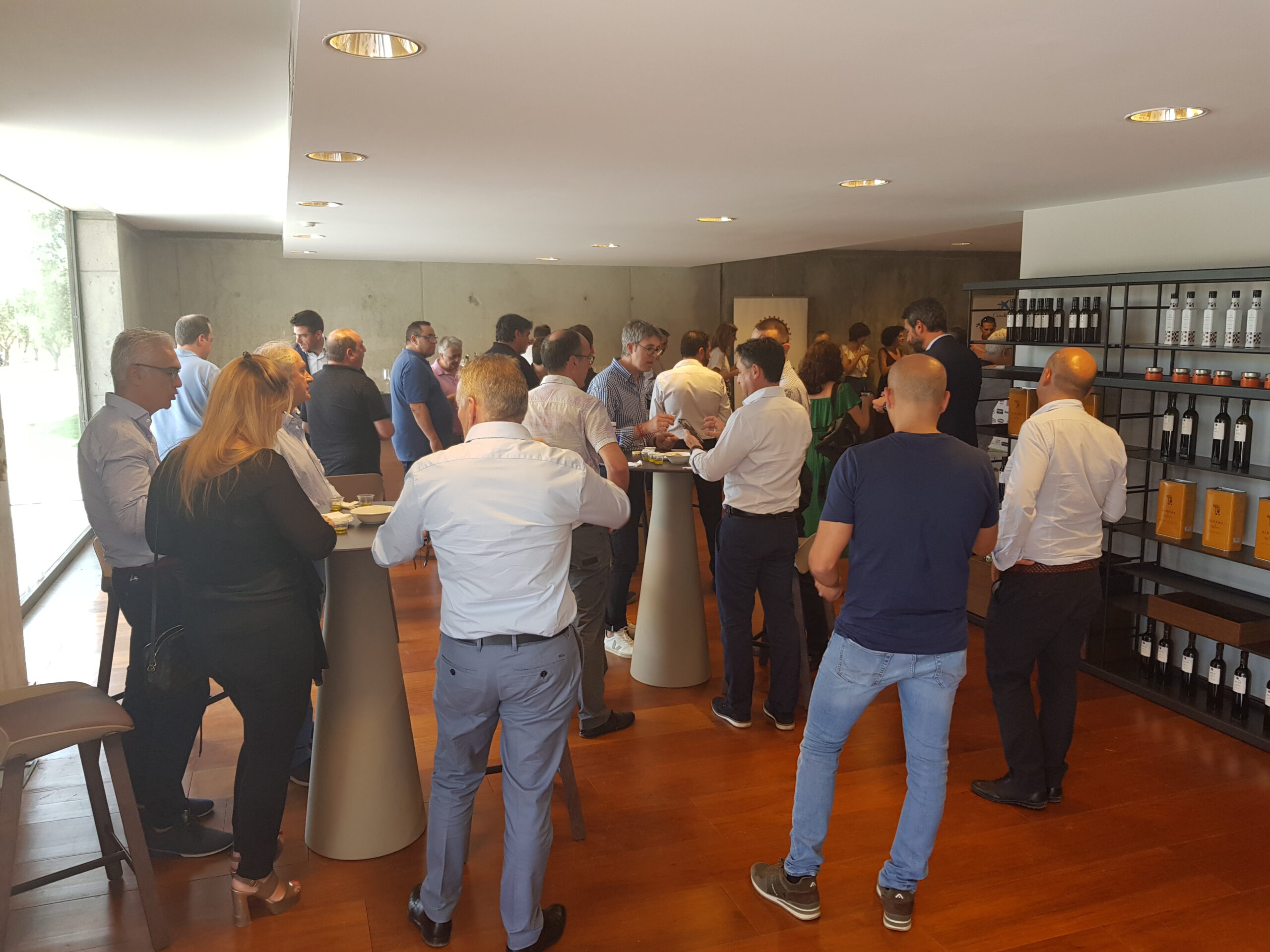 Para cerrar la jornada los asistentes han podido disfrutar de una visita y cata de aceites en Hacienda Queiles y posteriormente, de una comida de empresas en el Hotel Pago de Cirsus de Ablitas.