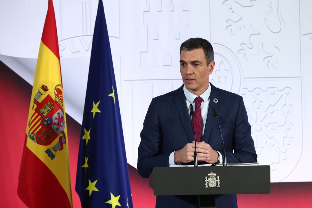 El presidente de Gobierno de España, Pedro Sanchez, en la rueda de prensa en la que presento el nuevo plan de «medidas anticrisis»