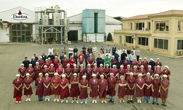 El equipo personas que trabaja en las instalaciones de Dantza en su centro productivo de Castejón