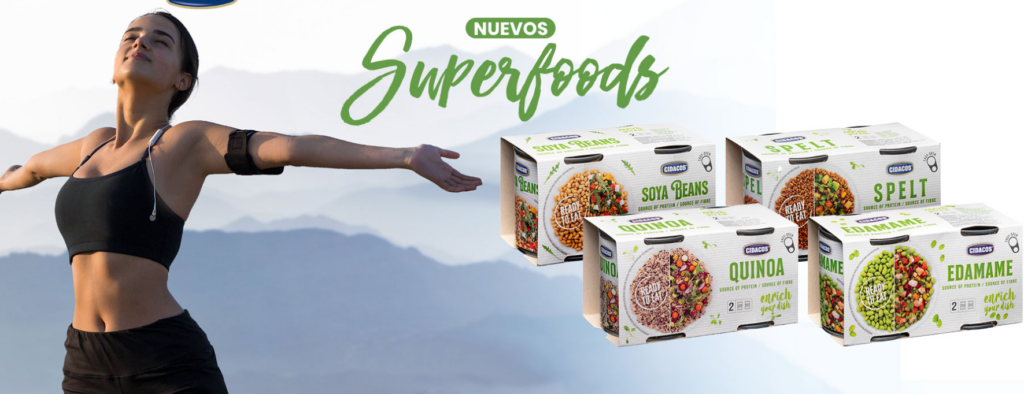 Cidacos, además, dedica el 2% de su facturación a proyectos de investigación para mejorar la calidad de sus productos y lanzar nuevas gamas al mercado, como sus nuevos Superfoods, recetas listas para consumir con base de Edamame, Espelta, Quinoa O Habas De Soja y verduras.