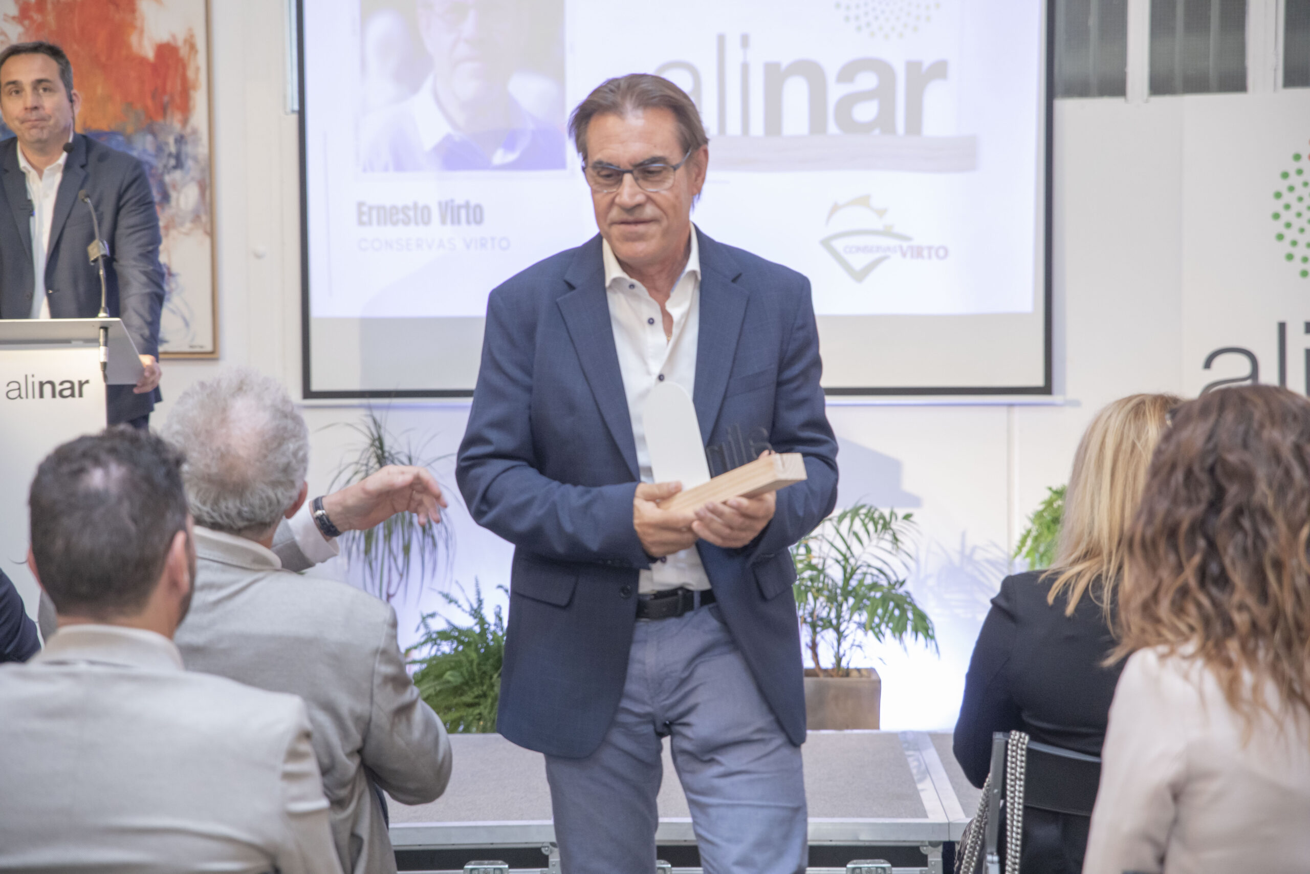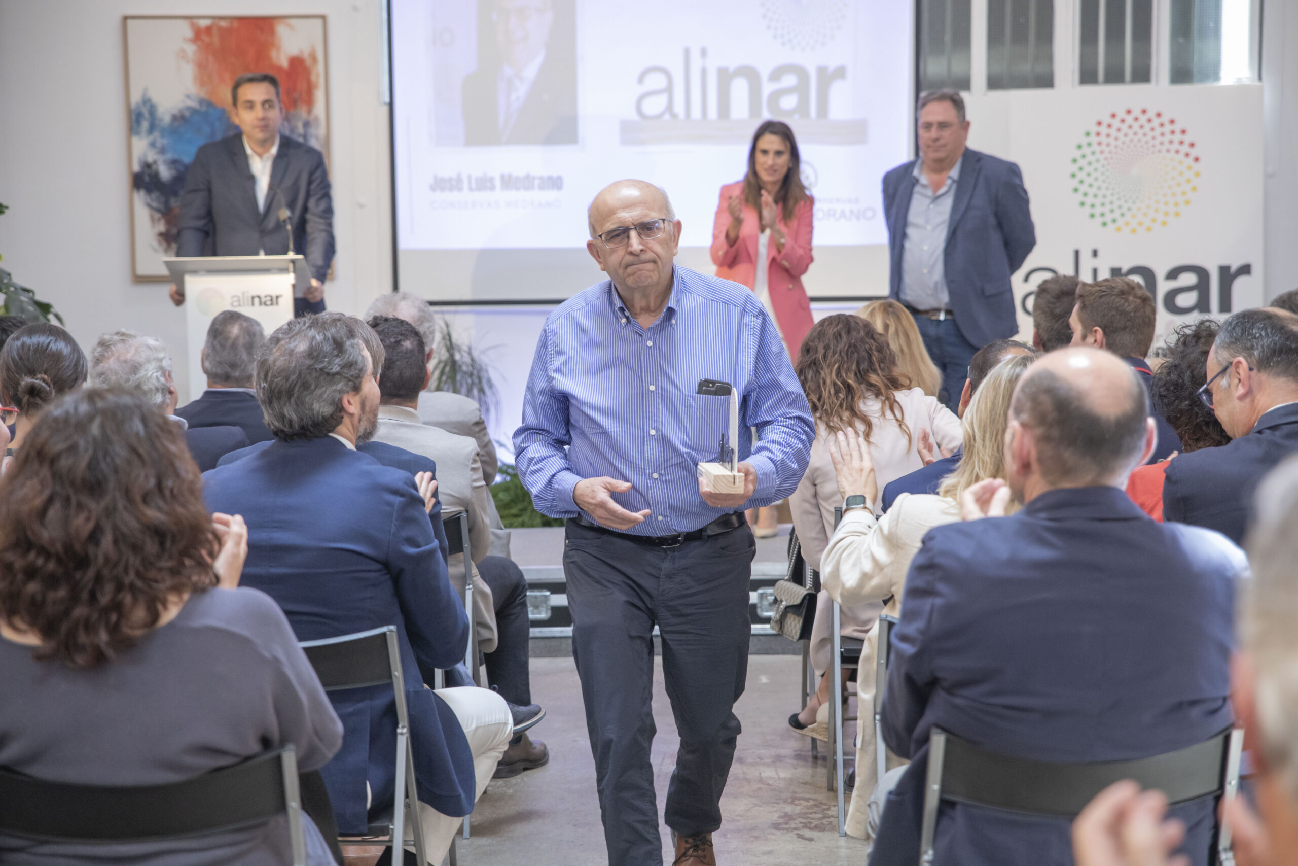 El acto ha finalizado con la entrega de los reconocimientos “ALINAR a la trayectoria empresarial agroalimentaria” a José Luis Medrano, fundador y ex director general de Conservas Medrano y a Ernesto Virto, fundador y ex director general de Conservas Virto, que han recogido el premio de manos de Isabel Moreno, directora territorial de Caixa Bank Ebro (patrocinadora del evento). ALINAR puso en marcha estos galardones el pasado año, con el objetivo de reconocer la trayectoria profesional al frente de sus empresas agroalimentarias socias y agradecer el compromiso con la Asociación. Posteriormente, los asistentes han disfrutado de un lunch, y la jornada ha finalizado con la tradicional comida de empresas socias, que este año se ha realizado en el asador navarro Mutiloa.